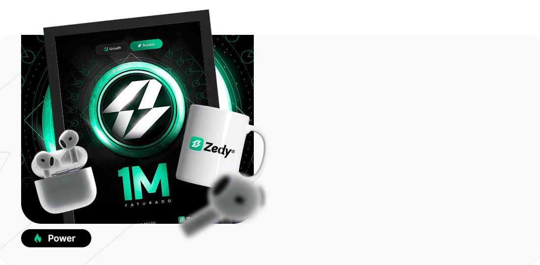 Seu resultado é impressionante! A Placa Zedy Power simboliza seu talento, visão e a habilidade de transformar oportunidades em grandes realizações. Celebre este marco com prêmios exclusivos que reforçam seu estilo e sucesso.